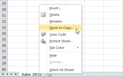 1. Click derecho en la pestaña de la hoja Sales 2010.