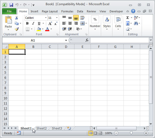Cuando usted abre Excel, automáticamente Excel selecciona la Hoja1 por usted. El nombre de la hoja aparece en cada pestaña de hoja en la parte inferior de la ventana del documento.