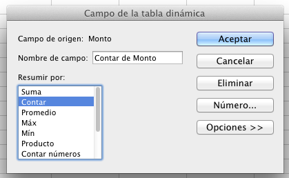 3. Escoja el tipo de cálculo que desee usar. Por ejemplo, click en Contar.