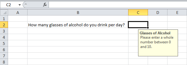 Un mensaje entrante aparece cuando un usuario selecciona la celda y le dice que ingresar.